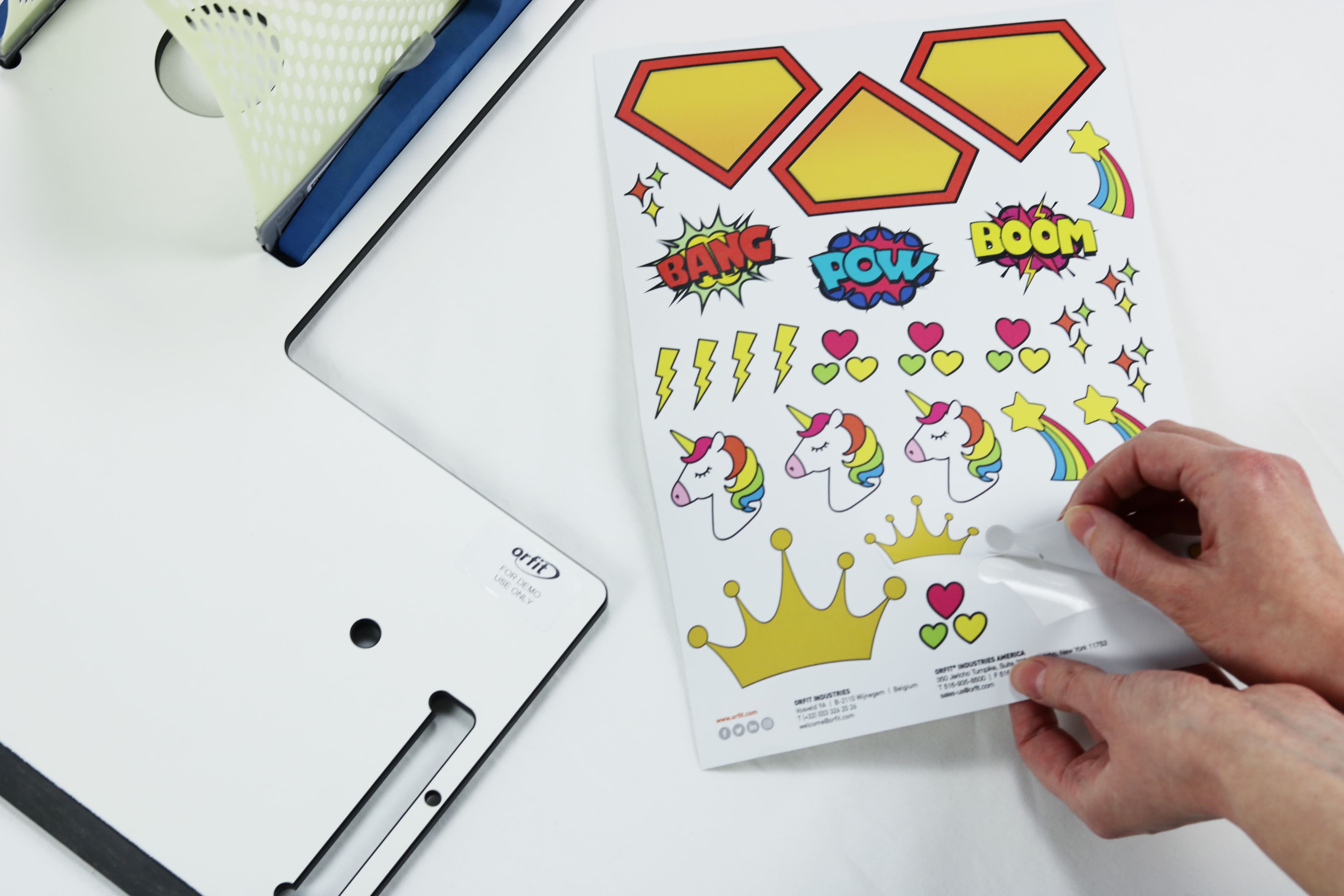 Orfit's sticker sheet was specifically designed to decorate radiotherapy masks. These stickers are ideal for a quick and colorful decoration of thermoplastic masks.